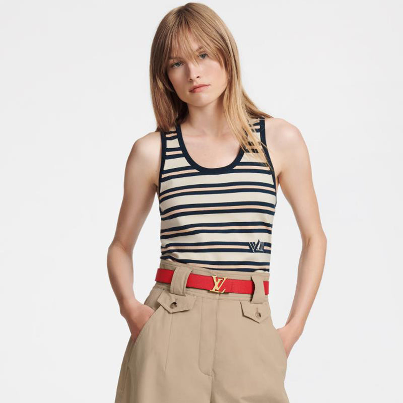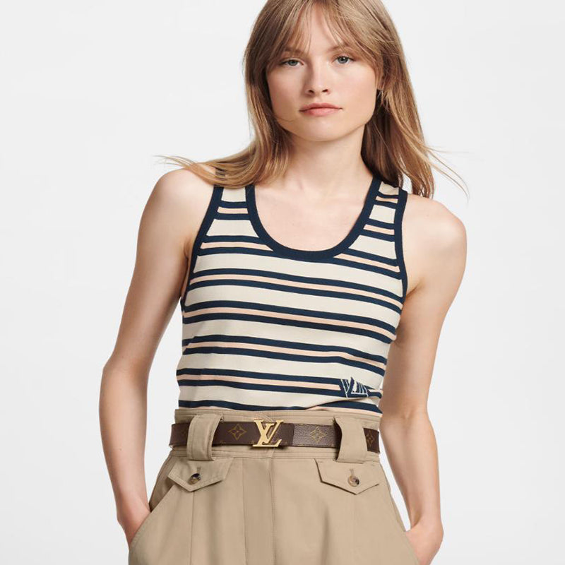 - このLV イニシャル ベルトは、クラシックなモノグラム キャンバスとソリッド カーフ レザーの両面を装飾し、目を引く LV レター バックルを強調しており、レザー グッズ シリーズとの相性も抜群です。