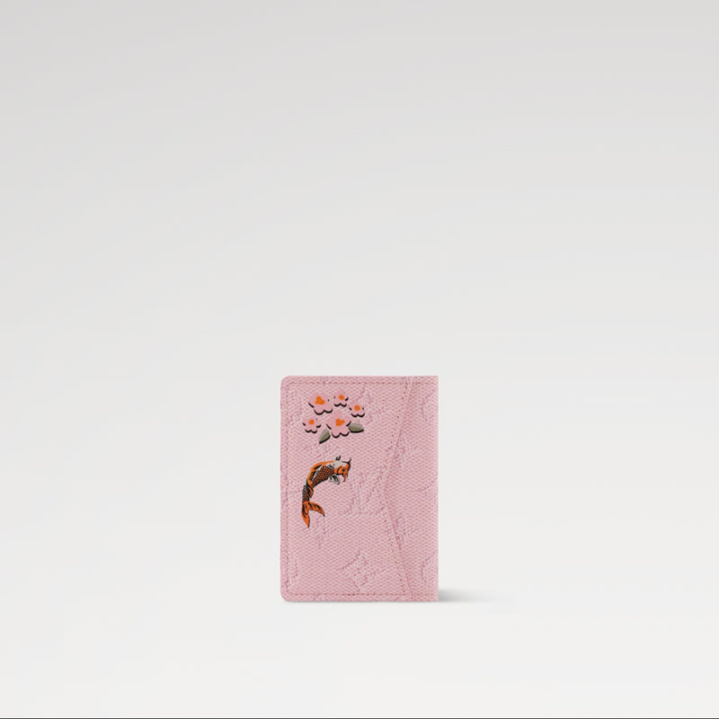 カラーのモノグラム・キャンバスで仕上げ、日本風のカラフルなモチーフで前面を彩ったカードケース「オーガナイザー・ドゥ ポッシュ」。「Louis Vuitton」シグネチャーをあしらったモチーフが、定番の小ぶりなアイテムにユニークなタッチを添えます。レザーのライニングを施した内装には3つのカードスロットと5つのポケットを、背面には使い勝手のよいフラットポケットを配しました。