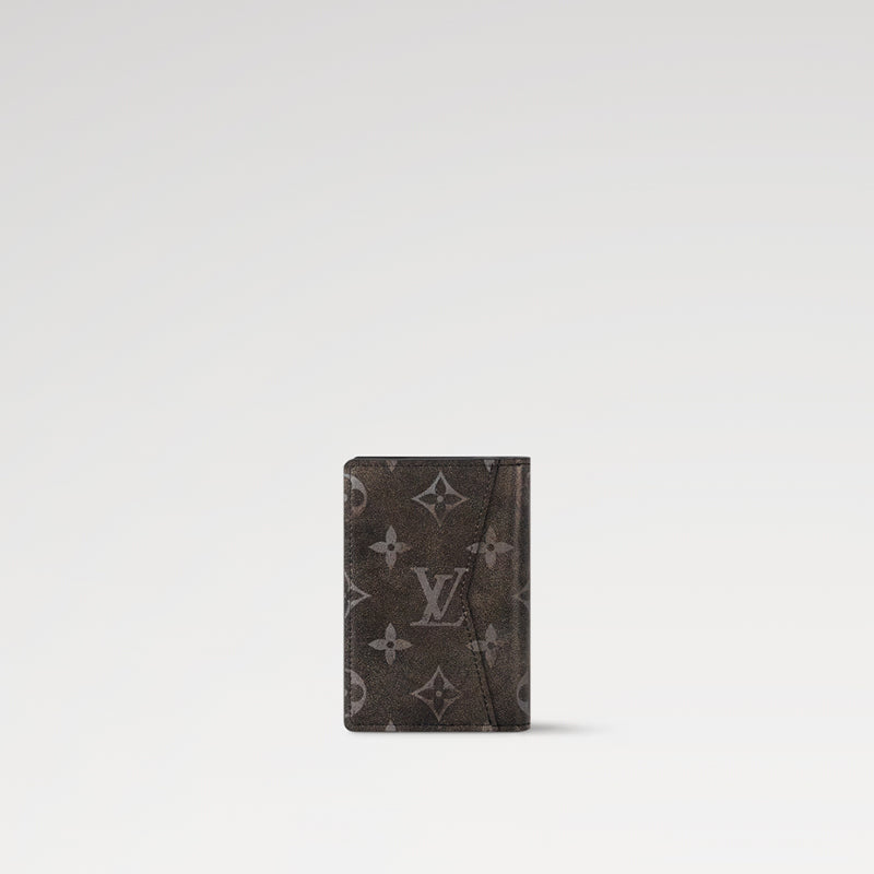 - 色褪せたようなモノグラム・パターンのプリントと使い込んだようなパティーナ(陰影)が特徴のブラッシュド・モノグラム カウハイドレザーで仕上げた「カードケース オーガナイザー・ドゥ ポッシュ」。風雨にさらされたカウボーイのレザーサドルを彷彿させる質感がシンプルな美しさを際立たせます。実用的で小ぶりなカードケースは、3つのカードスロットと5つの内ポケットに加え、外側にもポケットを備えています。