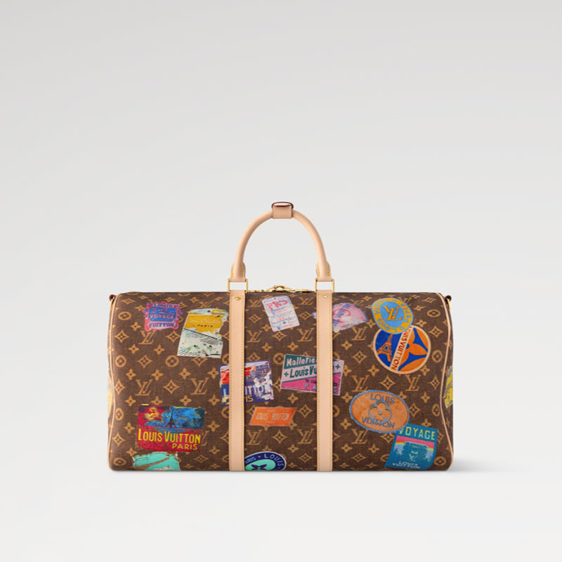 • このキーポル バンドリエール 50 ダッフルバッグは、モノグラム・キャンバスにルイ・ヴィトンのトラベルステッカーをあしらい、さりげなくヴィンテージスタイルを体現しています。取り外し可能な牛革製ネームタグは、ブランドの旅の伝統に敬意を表しています。エレガントなハンドルと、取り外し・調節可能な牛革製ショルダーストラップは、様々な持ち方を可能にします。