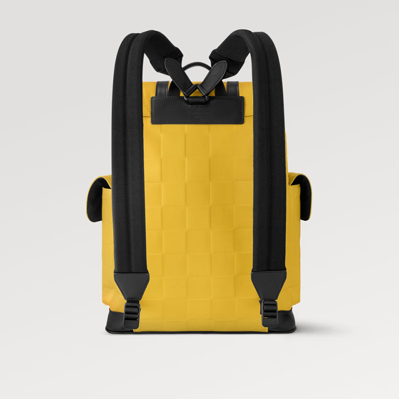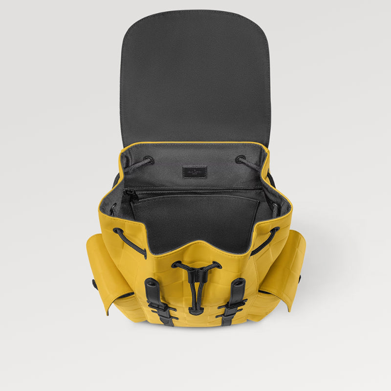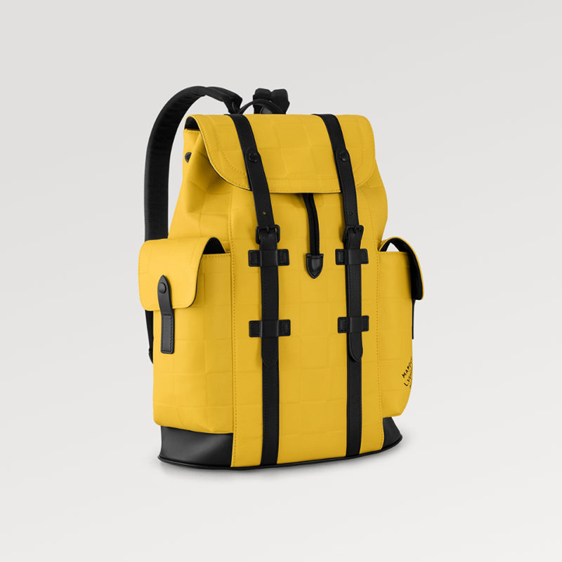 - クリストファー ミディアム バックパックは、ファレル ウィリアムスのダミエ スキューバ カーフスキン レザーで作られており、鮮やかな色合いでスポーティな外観を演出します。レザートリムとハードウェアが目を引くダミエのエンボスを強調し、広々としたサイドポケット、スナップボタン、ドローストリングの要素はクラシックなハイキングバッグのデザインを継承しています。