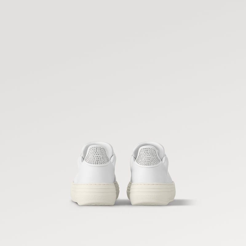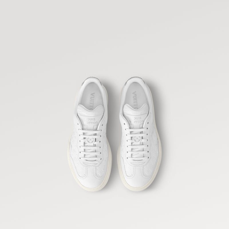 - これらの LV Groovy プラットフォーム スニーカーは、特大のアウトソールで 70 年代のデザインに現代的なひねりを加えています。このシューズはモノグラムのエンボス加工を施したカーフレザーからカットされており、後部にクリスタル装飾のラベルが付いています。モノグラムの花柄レース装飾、アウトソールのモノグラム花柄、ソールの稜線のダミエ柄がブランドの伝統を表しています。