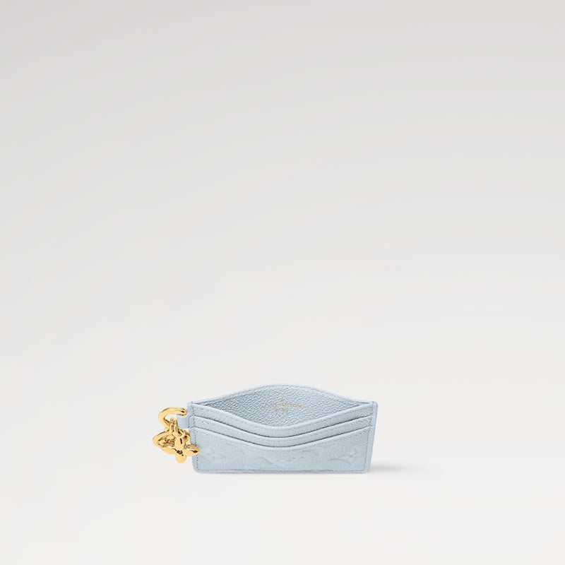 このLVチャームの名刺入れはモノグラムアンプラントレザーで作られており、控えめなモノグラムフラワーのエンボスパターンがよりエレガントです。この絶妙で実用的な名刺ホルダーには、モノグラムの花柄のチャームが 2 つ付いており、5 つの名刺スロットがあり、そのうちの 2 つは側面に、大きな 1 つは中央にあります。