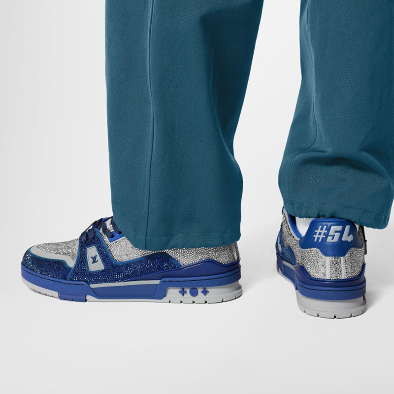 - LV トレーナー スニーカーは、レトロなバスケットボール シューズをヴァージル アブローが個人的に解釈したもので、今回は人工クリスタルのクリスタルの光沢が輝き、シュータンとサイドに LV の文字が刻まれています。背面の#54ロゴは、ルイ・ヴィトンブランド創設の1854年を表しています。