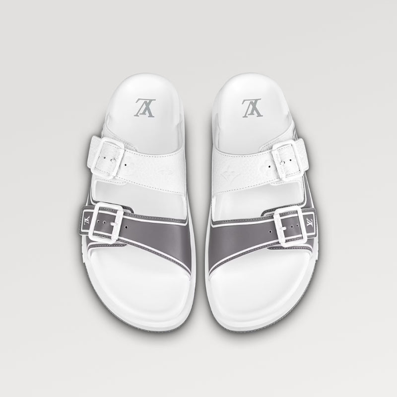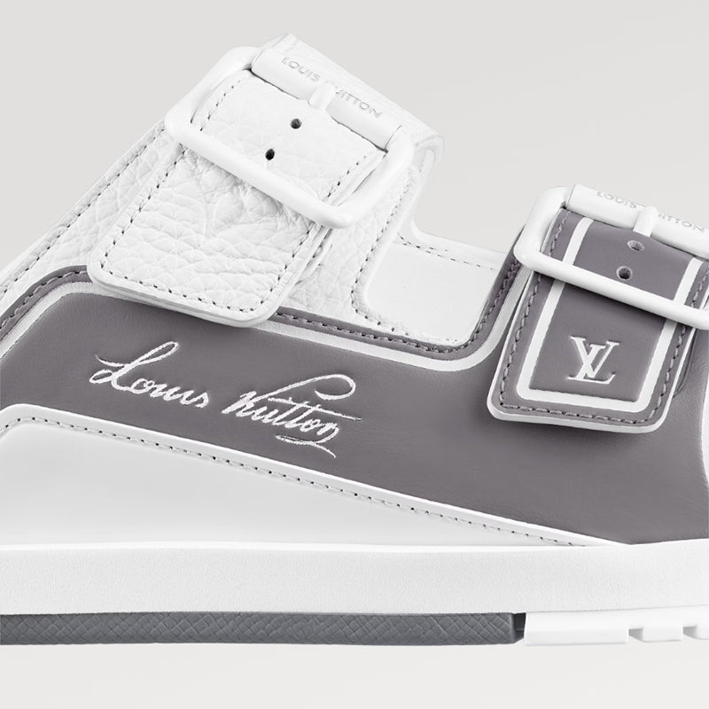 - LV トレーナー スライド サンダルは、調節可能な靴ひも、快適で柔軟なインソール、軽量のマイクロソール、ラバー アウトソールを備えた、LV トレーナー スニーカーの異素材アレンジです。グレインカーフスキンレザーに、片面にモノグラムパターンと手書きのLouis Vuittonシグネチャーがエンボス加工されています。