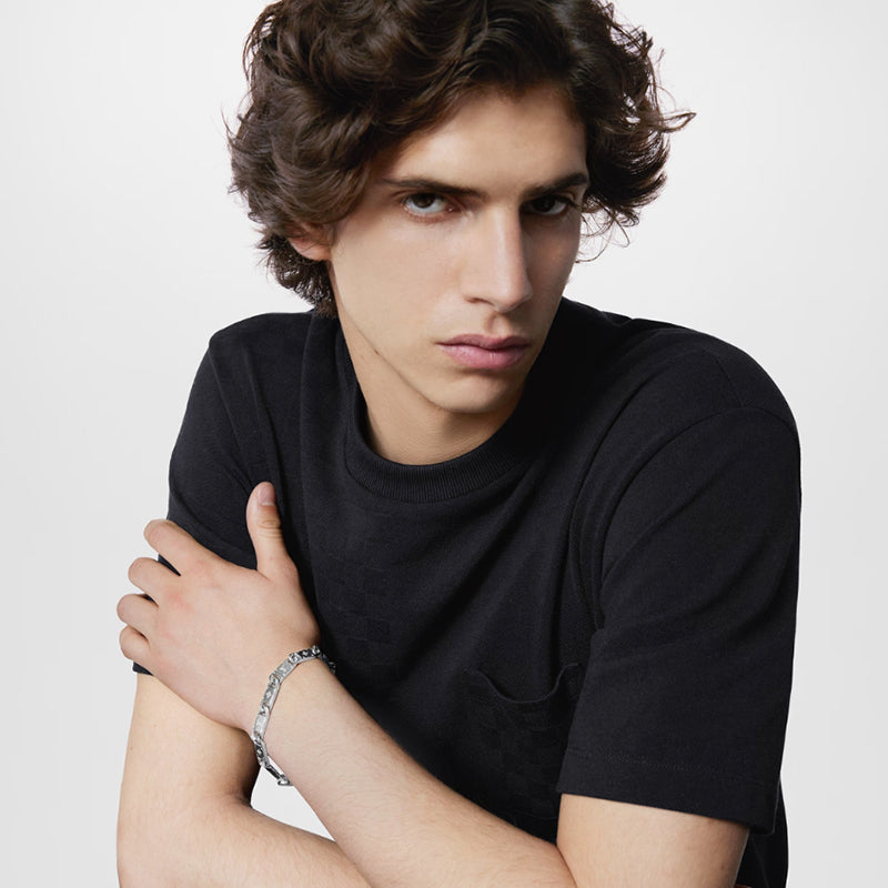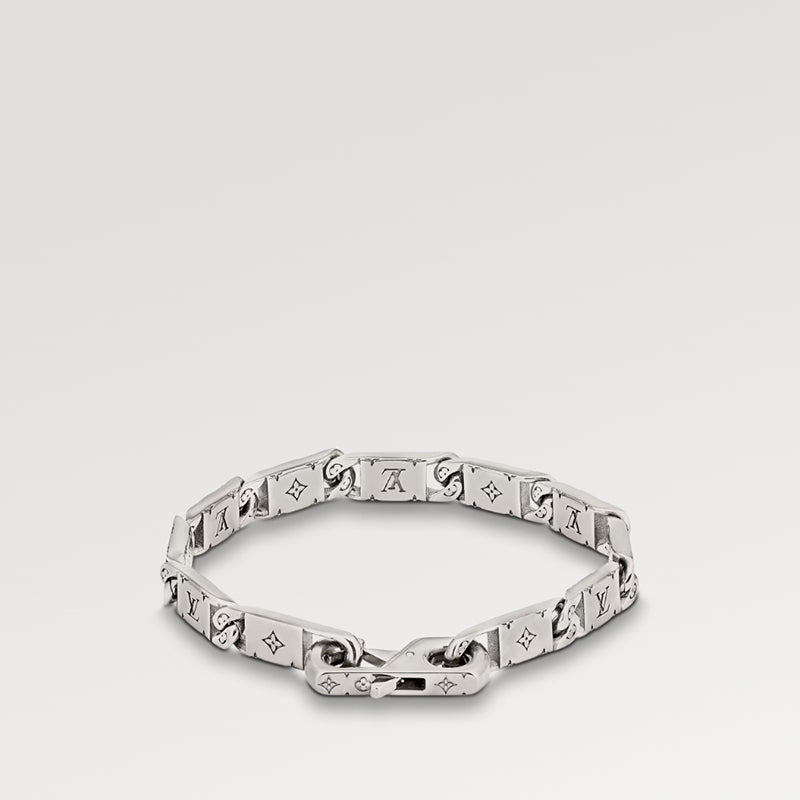 • 艶やかなメタルで象ったプレートを組み合わせたブレスレット「ブレスレット・モノグラム タイドアップ」。各プレートの両面には、LV イニシャルやモノグラム・フラワー モチーフなど、メゾンのシグネチャー・モチーフの刻印がさりげなく施されています。同シリーズのネックレスとのコーディネートもお楽しみいただける、精緻なディテールが魅力のアイテムです。