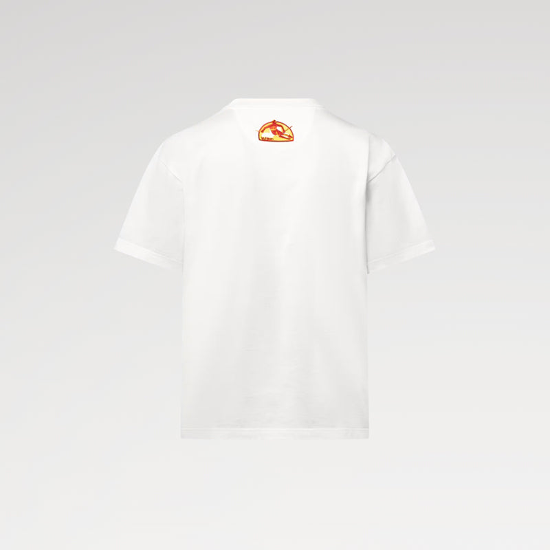 - 柔らかいオーガニックコットンを使用したグラフィカルなTシャツ。遊び心溢れるモチーフをオレンジでプリントしました。メゾンのシグネチャーとゴールドカラーのアクセントで飾った、ヴィンテージスキーのセレクションが描かれています。背面に配したスラロームするスキーヤーをモチーフにした刺繍のパッチが、レトロな雰囲気をプラス。