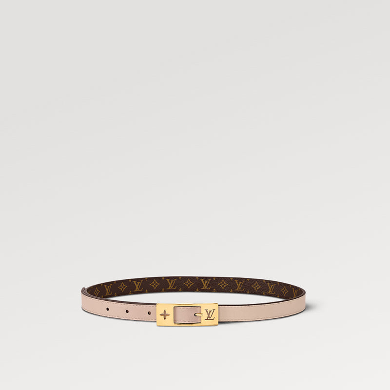 • プレシャスなゴールドカラーのバックルを添えた、スリムでシックな「ベルト・LV デュオ 18MM リバーシブル」。LV イニシャルとモノグラム・フラワー モチーフのシェイプにストラップが覗くよう、バックルの両サイドにカットアウトを施しました。上質なレザーとメゾンを象徴するモノグラム・キャンバスで仕上げた、独創的な構造のリバーシブルアイテムです。