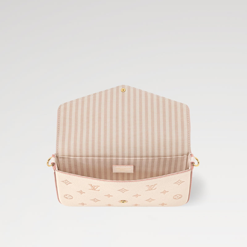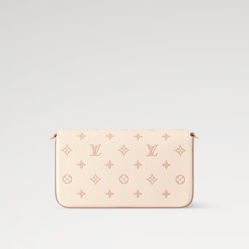 - このポシェット フェリーシ チェーンバッグは、ツートンカラーのレザーボディに、取り外し可能なジッパー付きポケットとカードスロットを備えています。モノグラム・パターンが新たに解釈されています。きらめくチェーンは、デイタイムからナイトタイムまで、様々なシーンでエレガントに持ち運べます。