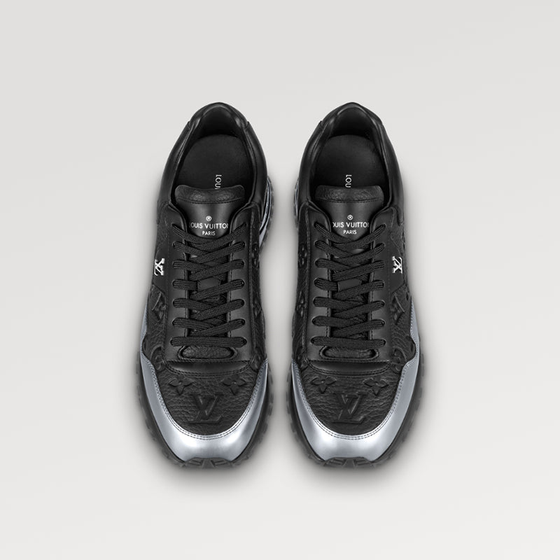 - 2021年秋冬のランアウェイスニーカーは、モノグラムのエンボス加工を施したグレインカウレザーで作られており、メタリックレザーのトリムがクラシックなランニングシューズのスタイルを継承しています。 LVモノグラムピンが片側を飾り、クリアラバーアウトソールがデザインを完成させています。