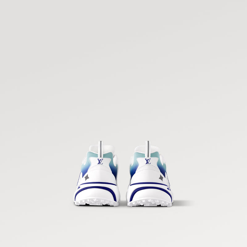 - LV ランナー タティック スニーカーは、伝統的なランニング シューズからインスピレーションを得たもので、今回はテクニカル メッシュ生地とカウレザーを組み合わせ、カラーグラデーションと穴あきデザインを組み合わせて繊細なアッパーを構築しています。 LVのレタリングと反射モノグラムの花がサイドに表示され、ヴィトンのロゴがアウトソールに配置されています。