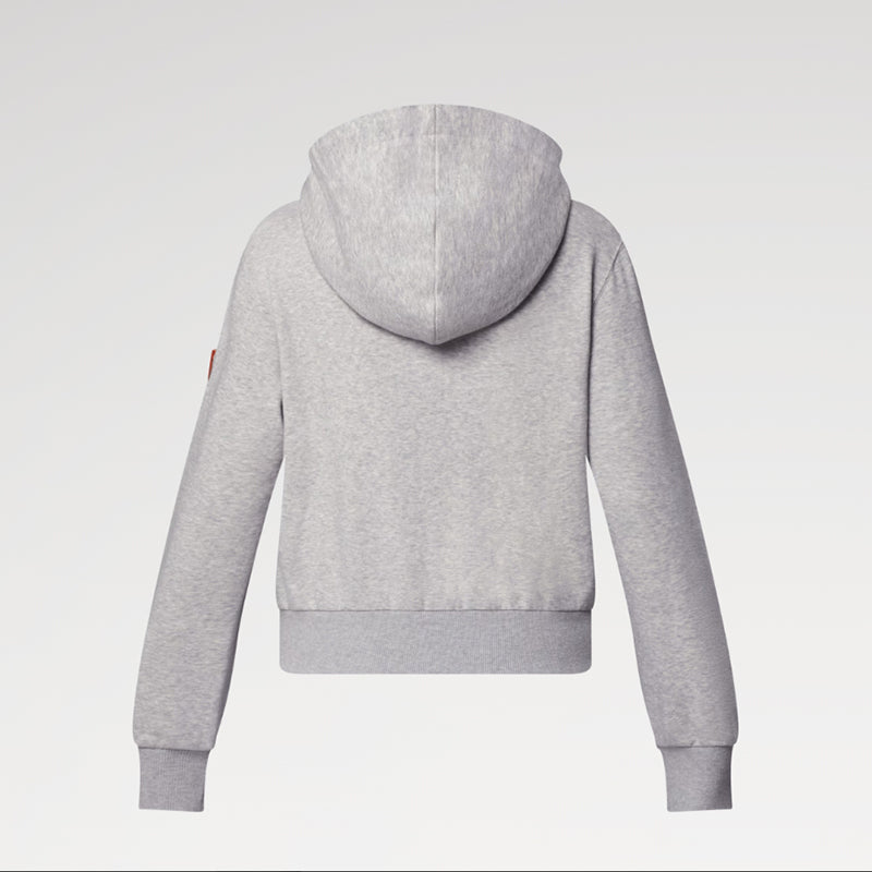 - 柔らかなコットンジャージーにオーバーサイズのリブ編みのヘムをあしらってアップデートしたマストハブなフーディ。前面のファスナーとドローストリングにヌメ革のアクセントを施してメゾンならではのエンブレマティックなタッチを添え、左袖にはLV サークルのパッチを控えめに配しました。2つの機能的なポケット付き。